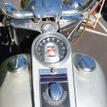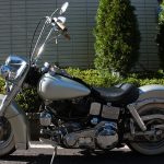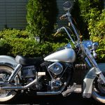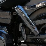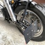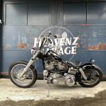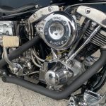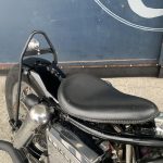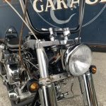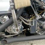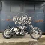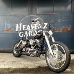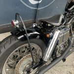FLHリアフェンダーを7”ラウンドトップフェンダーをスイングアームマウントに変更し、短めのシーシーバーをワンオフで製作そこにLEDの小型テールライト、
